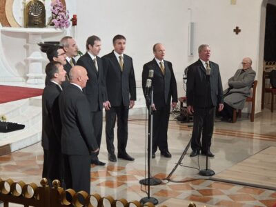 Dornberk – V nedeljo, 26. novembra 2023, smo v župnijski cerkvi v Dornberku lahko prisluhnili Oktetu Simon Gregorčič ob njihovi 45. obletnici delovanja. Program je povezoval priznani slovenski filmski in gledališki igralec Pavle Ravnohrib.
