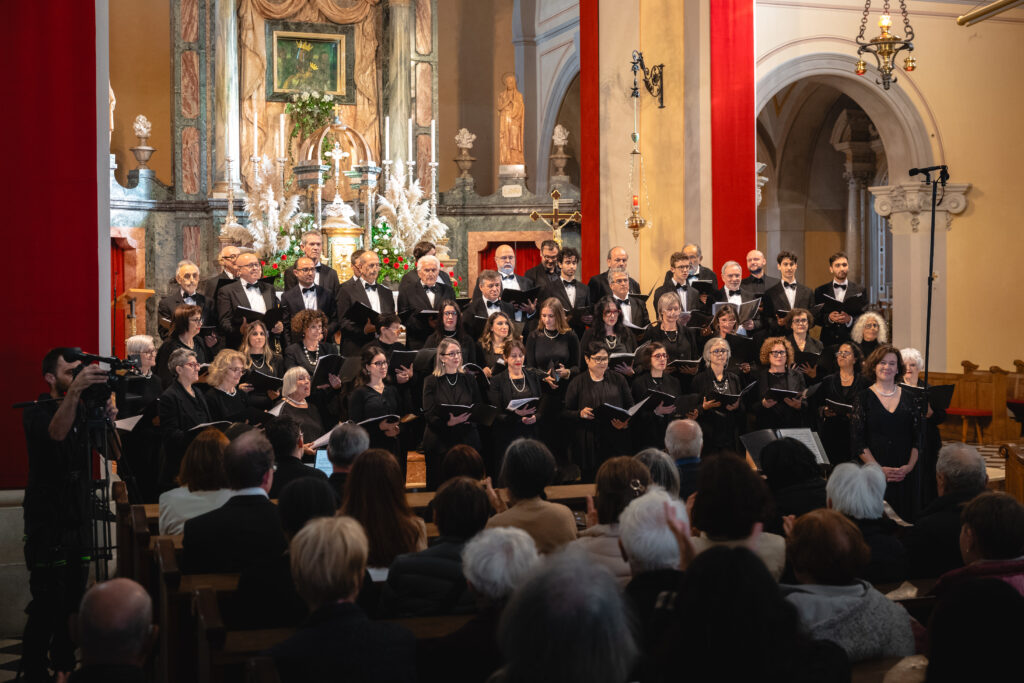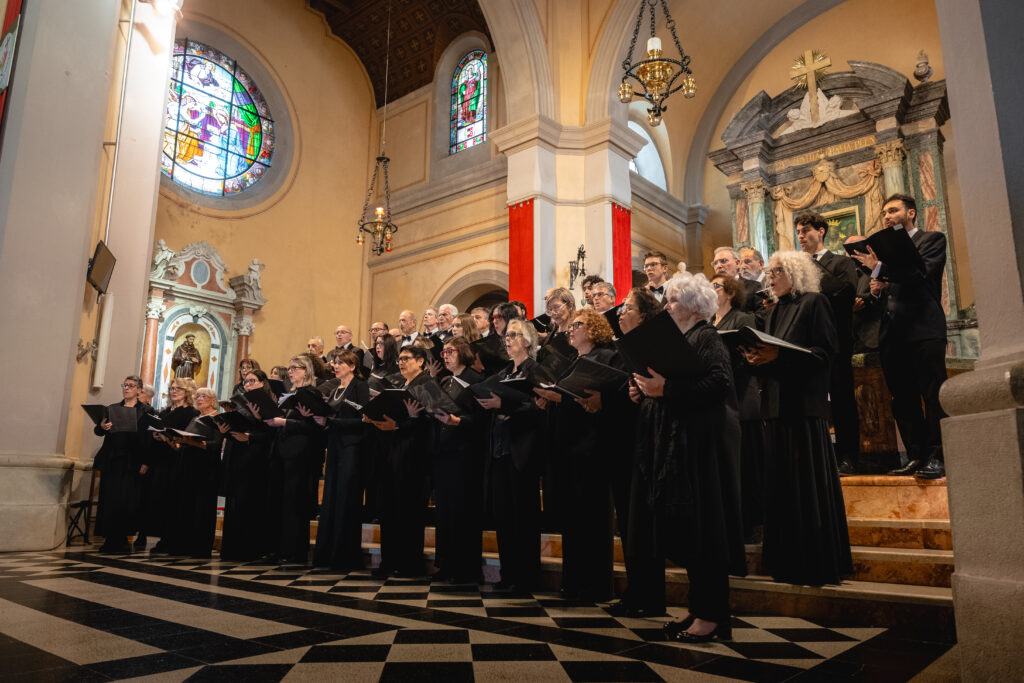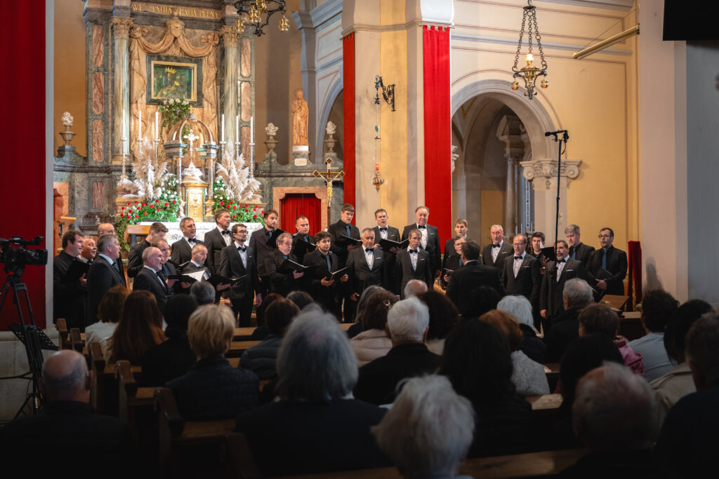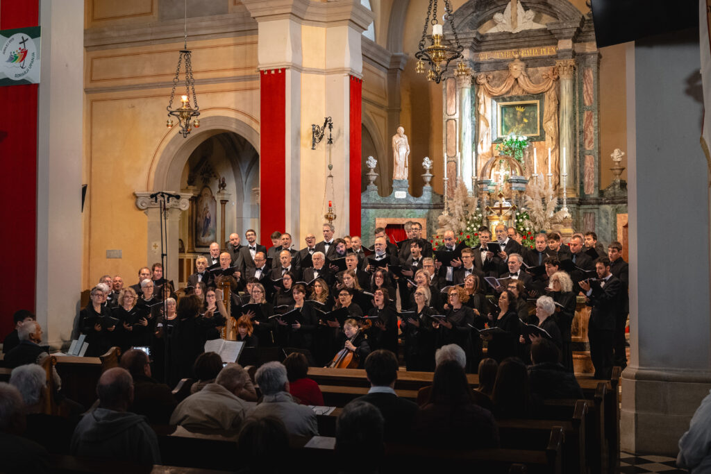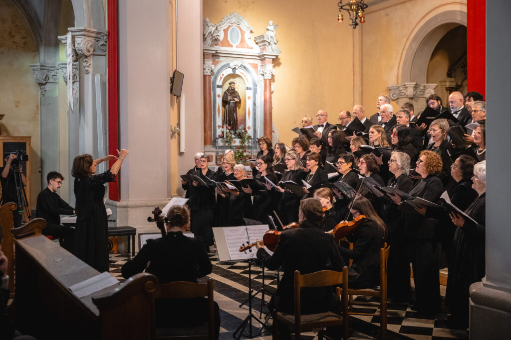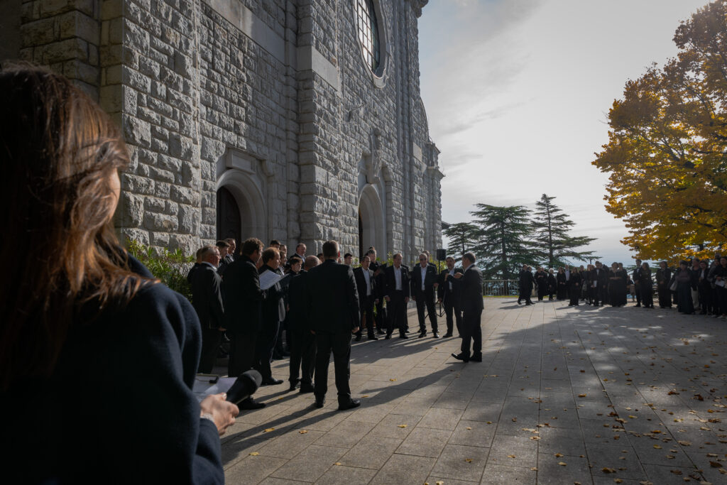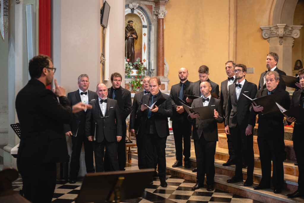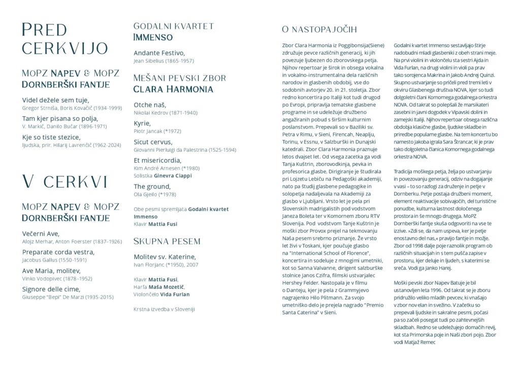 Zaključni dogodek na Sveti Gori so oblikovali združena moška zbora MoPZ Napev (zborovodja Matjaž Remec) in MoPZ Dornberški fantje (zborovodja Janko Harej), mešani pevski zbor Clara Harmonia iz Siene (zborovodja Tanja Kuštrin), godalni kvartet Immenso, klaviaturist Mattia Fusi in harfistka Maša Mozetič. Koncert se je začel v na sončno obsijani ploščadi pred baziliko in se nato nadaljeval v cerkvi. Najprej so nastopili moški, sledil je godalni kvartet, mešani zbor, zaključili pa so skupno s krstno slovensko izvedbo skladbe Molitev sv. Katerine skladatelja Ivana Florjanca.