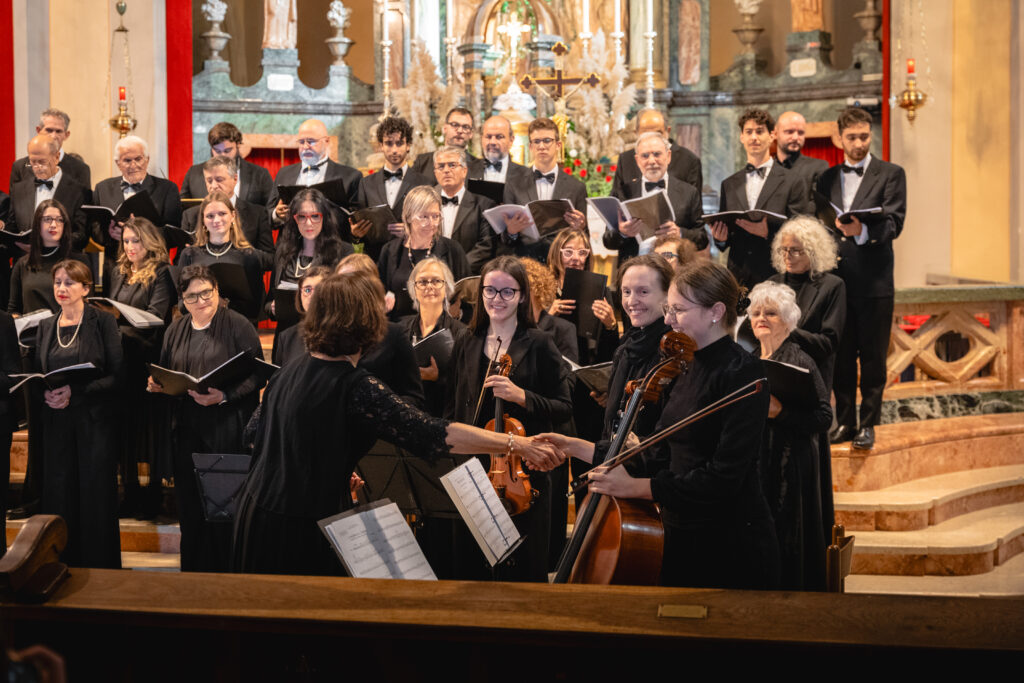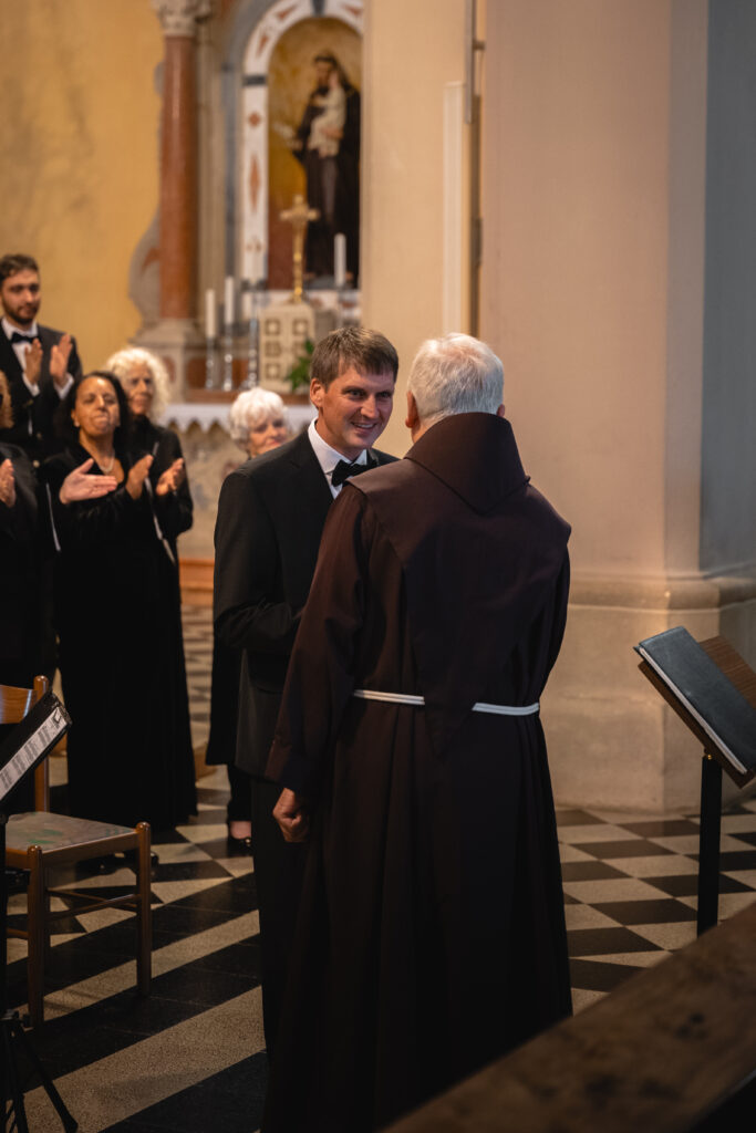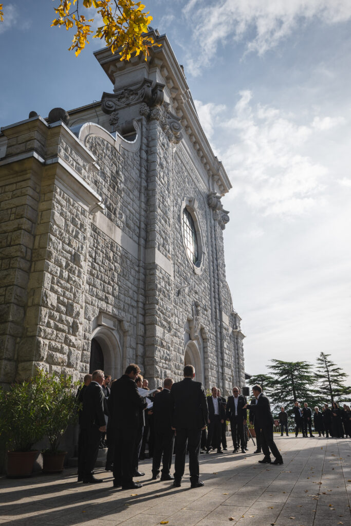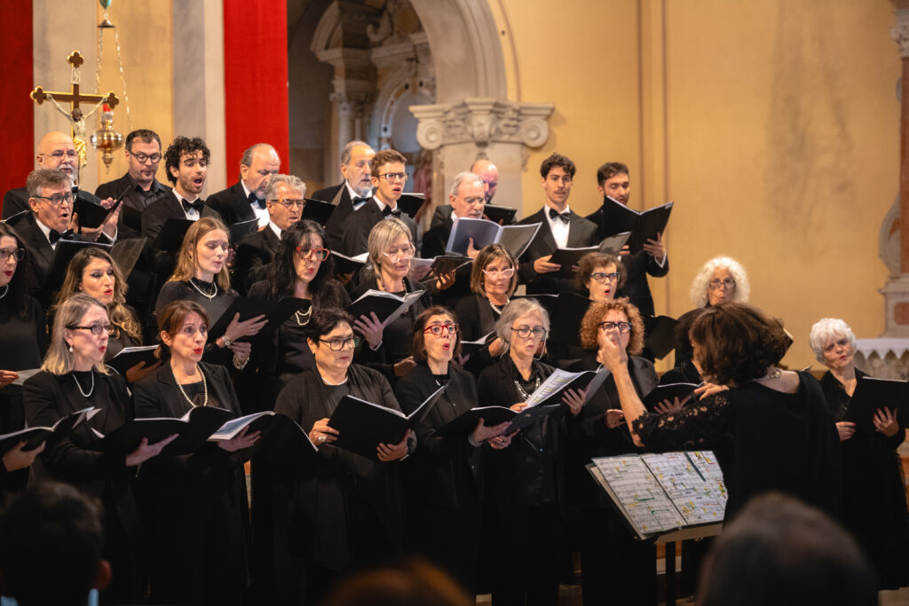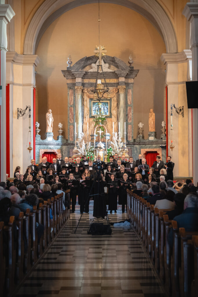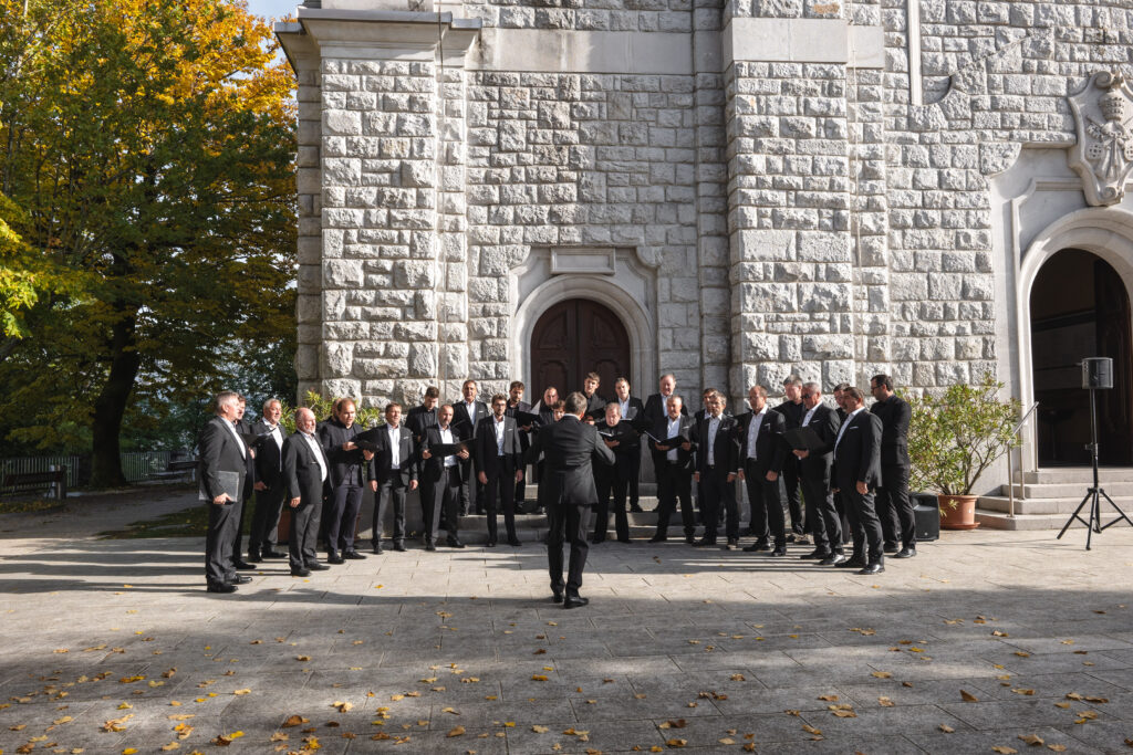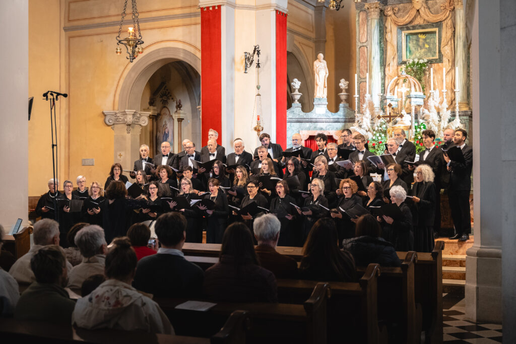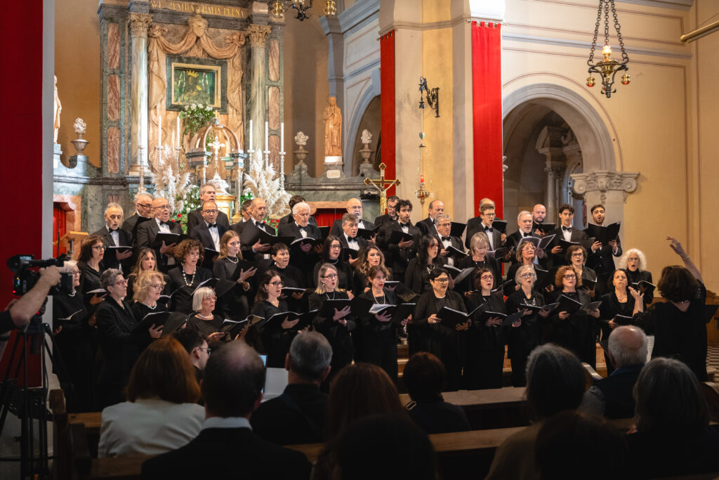 Zaključni dogodek na Sveti Gori so oblikovali združena moška zbora MoPZ Napev (zborovodja Matjaž Remec) in MoPZ Dornberški fantje (zborovodja Janko Harej), mešani pevski zbor Clara Harmonia iz Siene (zborovodja Tanja Kuštrin), godalni kvartet Immenso, klaviaturist Mattia Fusi in harfistka Maša Mozetič. Koncert se je začel v na sončno obsijani ploščadi pred baziliko in se nato nadaljeval v cerkvi. Najprej so nastopili moški, sledil je godalni kvartet, mešani zbor, zaključili pa so skupno s krstno slovensko izvedbo skladbe Molitev sv. Katerine skladatelja Ivana Florjanca.