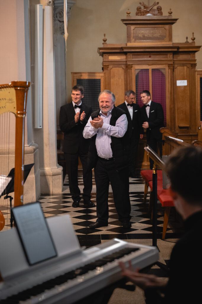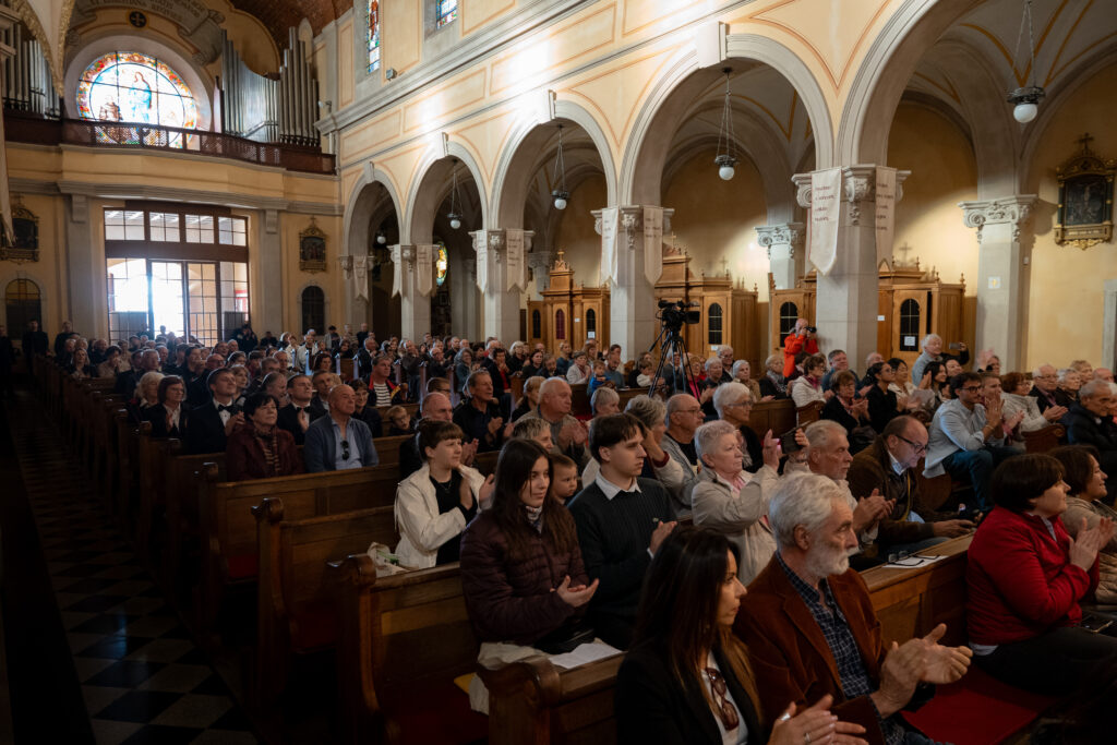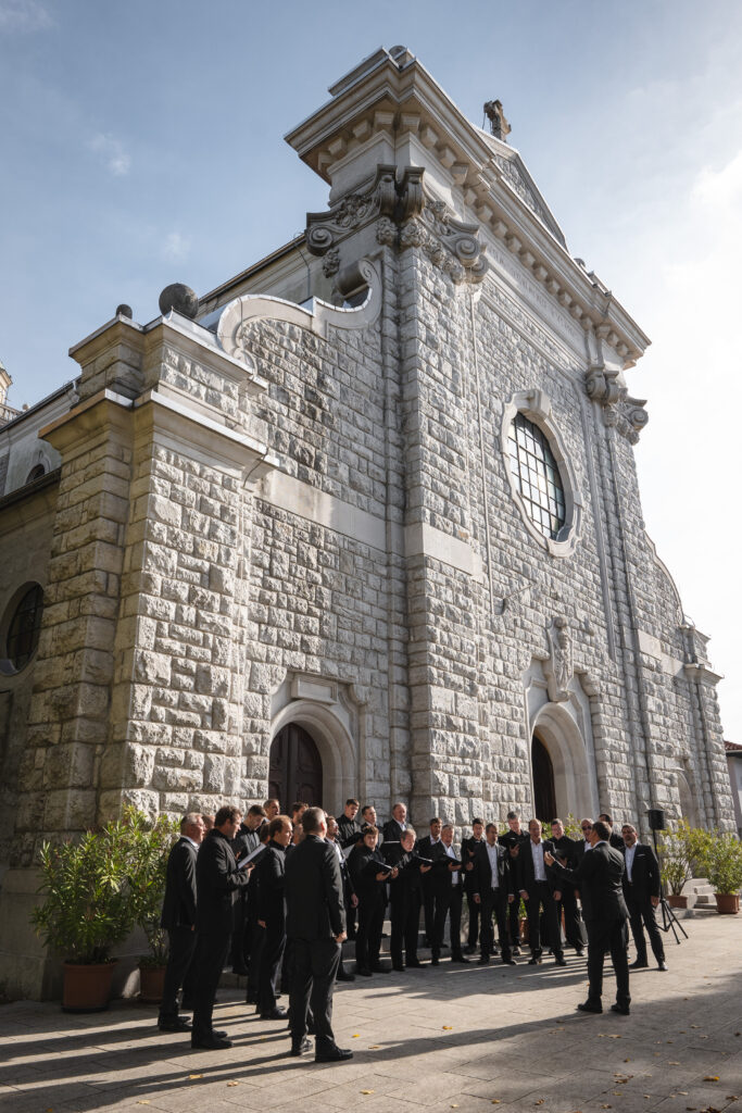 Številni obiskovalci koncerta so z veseljem prisluhnili raznolikemu programu in se ob lepem vremenu zadržali pred baziliko tudi še po koncertu.